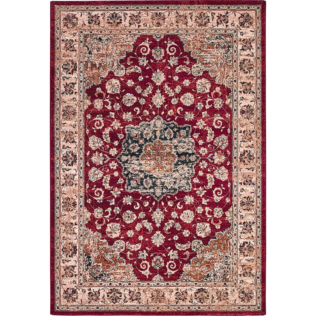 Il tappeto ANTARES 57559/1464 si distingue per il suo affascinante design ispirato ai classici persiani tappeti, caratterizzato da un vivace fondo rosso bordeaux, decorazioni floreali intricate e bordi finemente dettagliati. Il motivo centrale aggiunge profondità e armonia al design, rendendolo una scelta perfetta per ambienti eleganti e accoglienti come la camera da letto o il soggiorno.