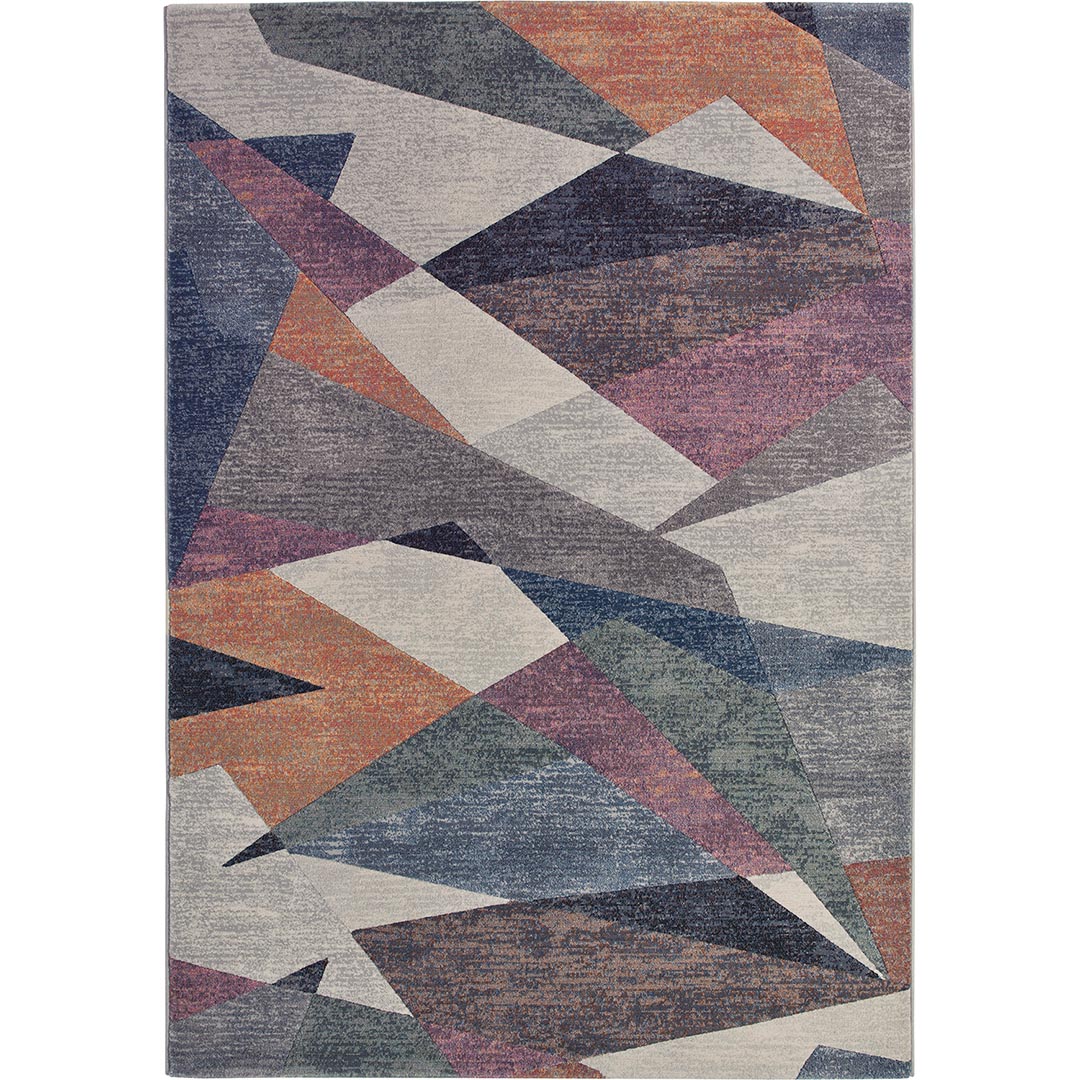 Il tappeto LAGUNA 63464/6626 cattura lo sguardo con il suo dinamico motivo geometrico. Triangoli e forme astratte in tonalità calde e fredde, tra cui arancione, viola, grigio e blu, si intrecciano in un design audace e contemporaneo. Questo tappeto, prodotto meccanicamente con precisione, rappresenta la perfetta combinazione di estetica moderna e funzionalità, ideale per completare l’arredo di soggiorni e salotti moderni.