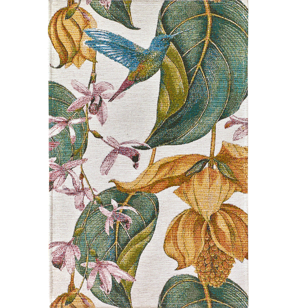 Il tappeto COCO' NATURE si distingue per il suo raffinato design ispirato alla natura. I dettagli intricati di foglie, fiori tropicali e un colibrì colorato creano un motivo vibrante e rilassante. Le tonalità verdi, dorate e rosa pastello si combinano armoniosamente, donando al tappeto un aspetto unico e sofisticato. Perfetto per la cucina o il bagno, questo tappeto aggiunge un tocco di freschezza e serenità ai tuoi spazi. La tessitura piatta uniforme lo rende ideale per ambienti moderni che richiedono eleganza e funzionalità.
