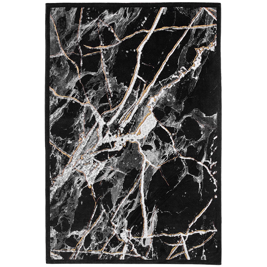 Il tappeto GABRIELLE 1022X/Q13 si distingue per il suo design moderno ed esclusivo, caratterizzato da un motivo marmoreo nero con venature dorate e bianche, che dona un tocco di raffinatezza a qualsiasi ambiente. Prodotto meccanicamente con precisione, è il complemento ideale per chi desidera uno stile contemporaneo e sofisticato.