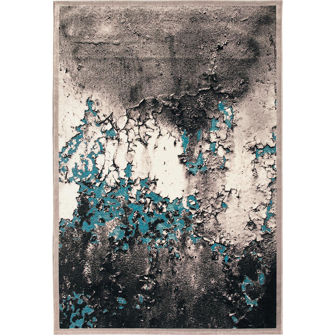 Il tappeto GABRIELLE 491B/Q13 presenta un affascinante design astratto ispirato a superfici materiche e texture naturali, con una combinazione di tonalità nere e grigie con accenti turchesi che donano un effetto visivo unico e accattivante. La lavorazione meccanica garantisce una tessitura di alta precisione, esaltando i dettagli del motivo e la texture a rilievo, rendendolo ideale per ambienti moderni e raffinati, come camere da letto e salotti contemporanei.
