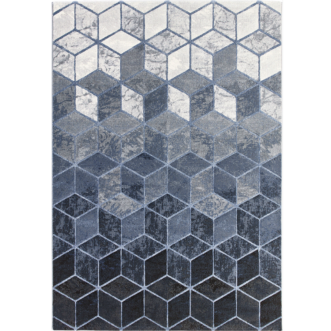 Il tappeto LAGUNA 63488/6656 si presenta con un design geometrico tridimensionale, caratterizzato da cubi in tonalità sfumate di grigio e blu che creano un effetto ottico dinamico e affascinante. La precisione del motivo, ottenuta attraverso una produzione meccanica di alta qualità, lo rende un complemento d’arredo unico per chi desidera unire stile e funzionalità nei propri spazi domestici.