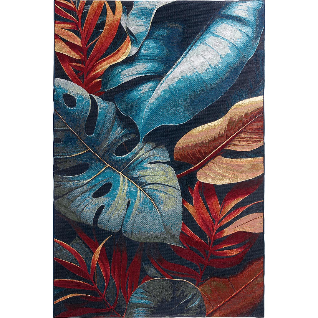 Il tappeto AMAZZONIA 858/Q03 X presenta un design sorprendente che cattura l'essenza della natura tropicale. Foglie stilizzate in tonalità vibranti di blu, rosso, oro e marrone creano un effetto dinamico e sofisticato. Ideale per arricchire il tuo spazio con una nota di personalità e stile, questo tappeto, fatto a macchina, è perfetto per ambienti interni come il salotto moderno, ma si adatta altrettanto bene agli spazi esterni.