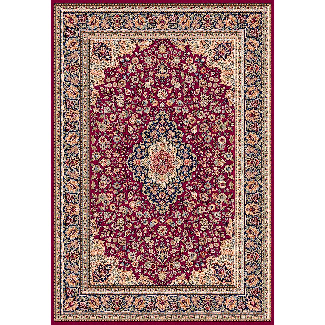 Il tappeto HALI 8745/014 è un autentico capolavoro che richiama lo stile classico dei tappeti persiani. Il rosso intenso del fondo, impreziosito da dettagli floreali delicati e contorni riccamente decorati, si sposa perfettamente con bordi che alternano tonalità di blu e avorio. Questa combinazione cromatica dona raffinatezza e calore, rendendo il tappeto ideale per arricchire l’arredamento del soggiorno o della camera da letto. Prodotto con tecniche meccaniche di precisione, assicura una qualità impeccabile e duratura.