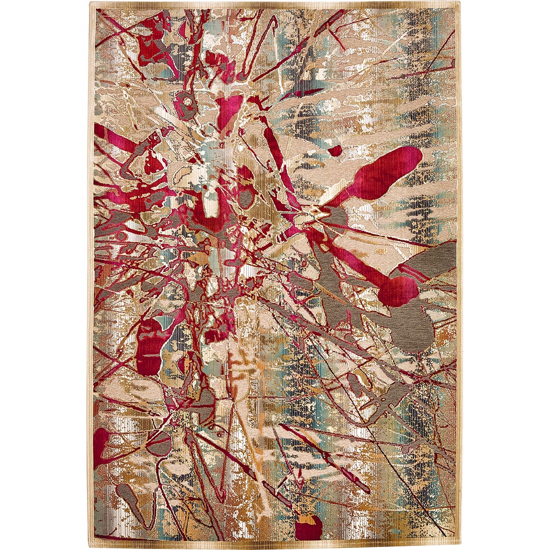 Il tappeto VENUS 90X/Q16 è un’esplosione di colori e trame artistiche che catturano lo sguardo e aggiungono vitalità a qualsiasi ambiente. Tonalità vivaci di rosso, rosa e azzurro su una base tenue, con dettagli intricati e accenti dorati. La composizione astratta crea un effetto dinamico e moderno, ideale per chi desidera un elemento d’arredo che esprima personalità e stile. La produzione meccanica garantisce una lavorazione precisa e dettagli impeccabili, rendendo il tappeto perfetto per soggiorni e camere da letto eleganti.
